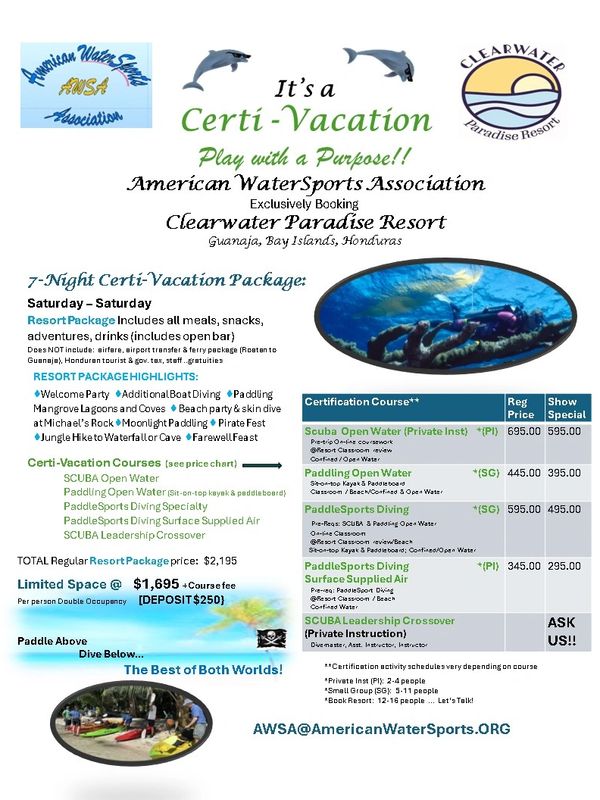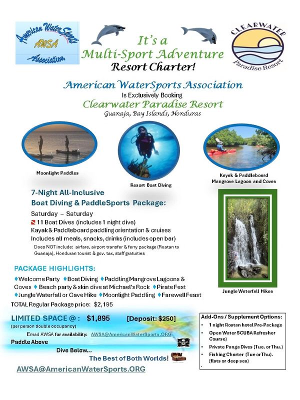 EMAIL us at AWSA@americanwatersports.org to learn more and reserve your spot! Join us for a unique multi-sport experience! World-class diving, incredible kayaking and paddleboarding, and tropical hikes.